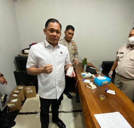 Untuk memberikan contah yang baik, Dirresnarkoba AKBP Ernersto Seiser dan Plt Wadirresnarkoba Andi M Ichsan juga melakukan tes urin.