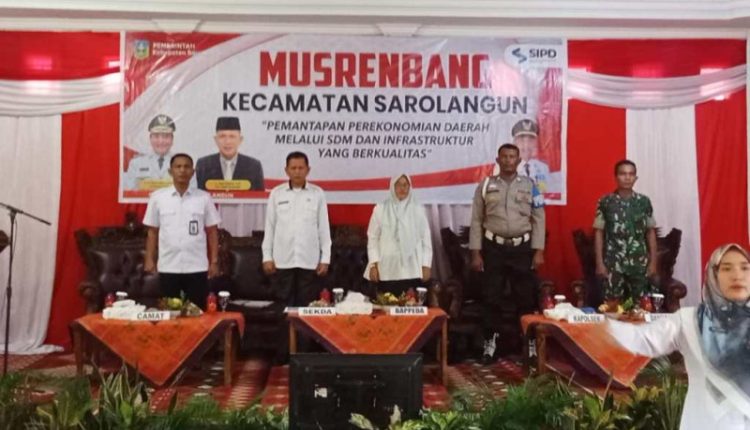 SERAMBIJAMBI.ID, SAROLANGUN – Kecamatan Sarolangun menggelar Musyawarah Perencanaan Pembangunan pada Rabu (07/02/24) pagi. Kegiatan yang mengangkat tema ”Pemantapan Perekonomian Daerah Melalui SDM dan Infrastuktur Yang Berkualitas” tersebut dibuka Pj Sekda Sarolangun, Ir.Dedi Hendri di Aula Kantor Camat Sarolangun.