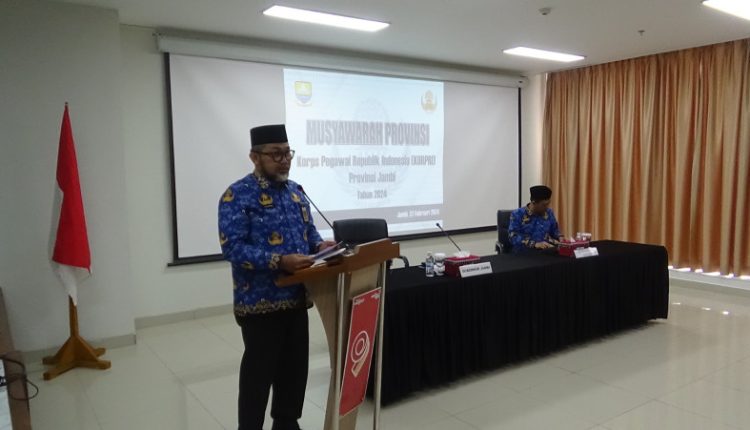 SERAMBIJAMBI.ID, JAMBI – Sekretaris Daerah Provinsi Jambi H. Sudirman, SH., MH mendorong organisasi Korps Pegawai Republik Indonesia (KORPRI) untuk meningkatkan disiplin dan kompetensi. Dorongan tersebut disampaikannya pada Musyawarah Provinsi Korps Pegawai Republik Indonesia (KORPRI) Provinsi Jambi Tahun 2024, bertempat di lantai 11 Gedung Mahligai Bank 9 Jambi, Selasa (27/02/2024).