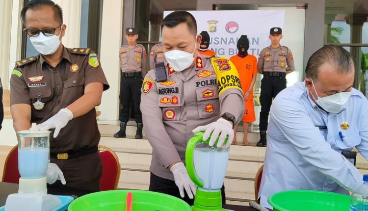 Barang bukti sabu tersebut dimusnahkan dengan cara diblender dan dicampur dengan cairan pembersih lantai merek porstek, Rabu (6/3/24) bertempat di Mapolres Tanjab Barat.