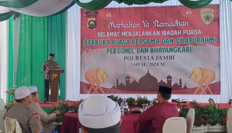 SERAMBIJAMBI.ID, JAMBI – Kepolisian Resort Kota (Polresta) Jambi menggelar Buka Puasa bersama seluruh personel dan Bhayangkari Cabang Kota Jambi bertempat di Lapangan Apel Polresta, Kamis (21/3/24).