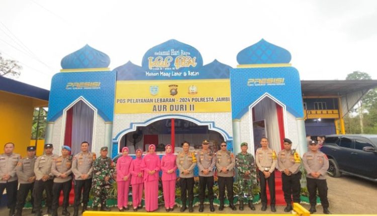SERAMBIJAMBI.ID, JAMBI – Kepala Kepolisian Resort Kota (Kapolresta) Jambi Kombes Pol Eko Wahyudi didampingi Ketua Bhayangkari Cabang Kota Jambi, Pejabat Utama Polresta Jambi melakukan pemantauan di Pos Pengamanan dan pos pelayanan mudik 2024, Sabtu (6/4/24).