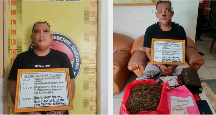 Kapolres Tanjab Barat AKBP Agung Basuki saat dikonfirmasi membenarkan adanya penangkapan terhadap pelaku berinisial NO (26) warga Tanjab Barat beserta barang bukti satu plastik warna merah yang diduga berisikan Narkotika jenis ganja dengan berat 1,5 Kilogram.