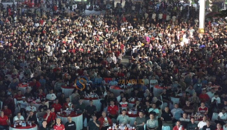 Tampak dihadiri ribuan masyarakat jambi, yang memenuhi lapangan hitam Mapolda jambi saat nonton bareng semi Final piala AFC U-23.