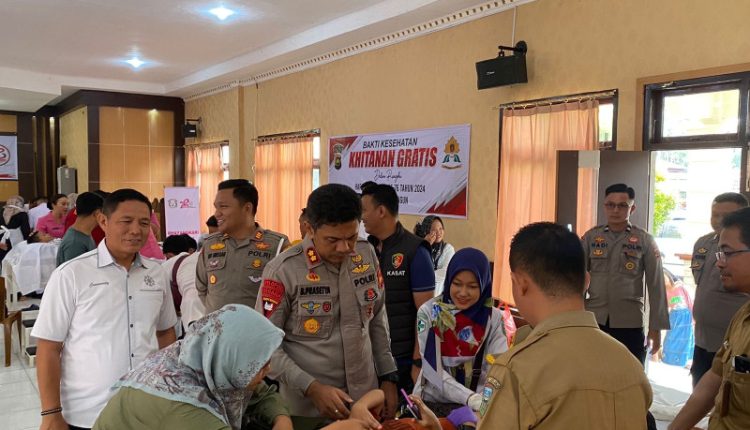 Kapolres Sarolangun AKBP Budi Prasetya didampingi Ketua Bhayangkari Cabang Sarolangun melihat langsung Khitanan Massal Dalam Rangka Hari Bhayangkara ke – 78 Tahun 2024 bertempat di Aula Polres Sarolangun.