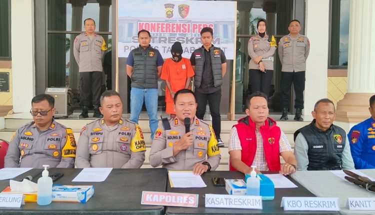 Kapolres Tanjab Barat AKBP Agung Basuki, S.IK, MM saat menggelar konferensi pers, Selasa (6/8/24) mengatakan, terduga pelaku yang diamankan berinisial BS (69) warga Desa Tlogosari Wetan, Kota Semarang, Provinsi Jawa Tengah.
