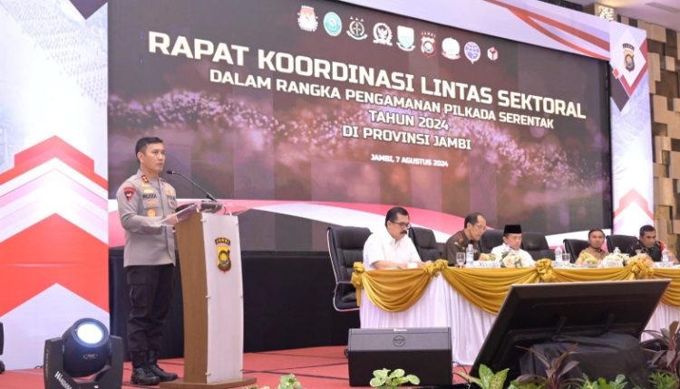 Pada kegiatan tersebut Kapolda Jambi memberikan arahan dan pernyataan dalam pembukaan Rapat Koordinasi Lintas Sektoral Persiapan Pengamanan Pilkada Serentak Tahun 2024.