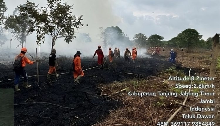 Kebakaran di Kabupaten Tanjung Jabung Timur Terjadi di Lahan Milik Penduduk, Tim PetroChina Turut Padamkan Api