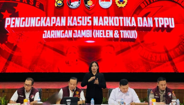 Selain dipimpin Wakabareskrim Polri Irjen Pol. Asep Edi Suheri, S.IK., M.Si, tampak hadir dalam konferensi pers Sestama PPATK RI Irjen Pol. Albert Teddy Benhard Sianipar, S.IK.,M.H, Karo Penmas Div Humas Polri Brigjen Pol. Trunoyudo Wisnu Andiko, S.IK, Wadir Tipidnarkoba Bareskrim Polri Kombes Pol. Arie Ardian Rishadi, S.IK., M.Si, Dirreskrimum Polda Jambi Kombes Pol. Dr. Andri Ananta Yudhistira, S.IK., M.H, Dirreskrimsus Polda Jambi Kombes Pol. Dr. Bambang Yudo Pamungkas, S.H., S.IK., M.Si, Dirresnarkoba Polda Jambi AKBP Ernesto Saiser, S.H.,S.IK., MH serta Para Stakeholder terkait. (*)