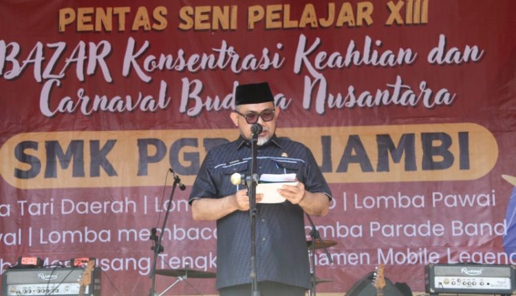 SERAMBIJAMBI.ID, JAMBI – Penjabat sementara (Pjs) Gubernur Jambi Dr. H. Sudirman, SH., MH mengapresiasi peran Sekolah Menengah Kejuruan (SMK) PGRI 2 Kota Jambi dalam menciptakan lulusan terbaik di Provinsi Jambi. Apresiasi tersebut disampaikan Pjs. Gubernur Jambi pada kegiatan Pentas Seni Pelajar XIlI (Ke-13) SMK PGRI 2 Kota Jambi, yang bertempat di Talang Bakung Kecamatan Paal Merah, Selasa (29/10/2024).
