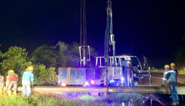 Selain perbaiki tiang yang tumbang akibat ditabrak truk, petugas juga memperbaiki 2 tiang lainnya yang tumbang akibat cuaca ekstrem di SP 8 dan Rantau Badak, Kecamatan Muara Papalik.