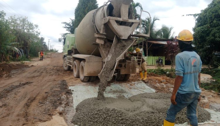Dikeluhkan Warga Jalan Ness Rusak, Pihak HK Turunkan Alat Berat dan Cor Jalan Rusak