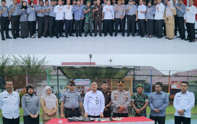 MUARASABAK – Hidayat, Kakanwil Ditjenpas Jambi Pimpin Apel Deklarasi Zero Halinar dan Pemusnahan Barang Hasil Razia di Lapas Narkotika Kelas IIB Muara Sabak yang didampingi Pejabat Administrator Kanwil Ditjenpas Jambi.
