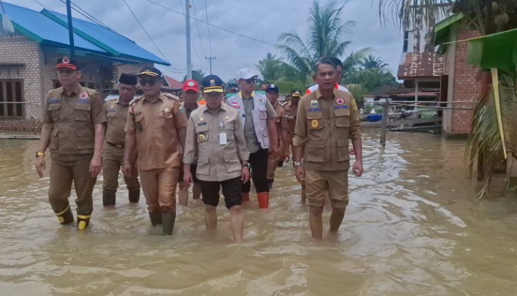 Di Desa Sarang Burung, Gubernur Al Haris dan Wabup Muaro Jambi Arungi Banjir Berikan Bantuan Sembako
