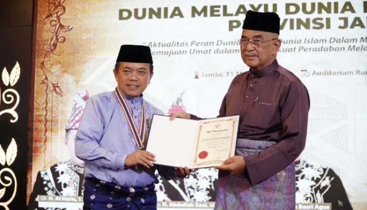 SERAMBIJAMBI.ID, JAMBI – Satu lagi pengakuan dunia internasional diraih Gubernur Jambi Dr. H. Al Haris, S.Sos, MH. Kali ini, orang nomor satu di Provinsi tersebut disematkan gelar Tun Perak oleh Tuan Yang Terutama Tun Seri Setia DR. H. Mohd. Ali Rustam selaku Presiden Dewan Melayu Dewan Islam (DMDI) yang Di-Pertua Negeri Malaka.