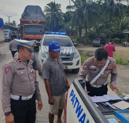 Satlantas Polres Tanjab Barat ‘Sikat Habis’ Truk ODOL di Jalintim Jambi-Pekanbaru