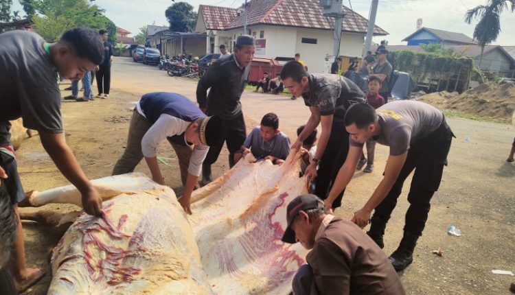 Semangat Berbagi di Hari Raya: Polres Tanjab Barat Sembelih 11 Ekor Hewan Kurban