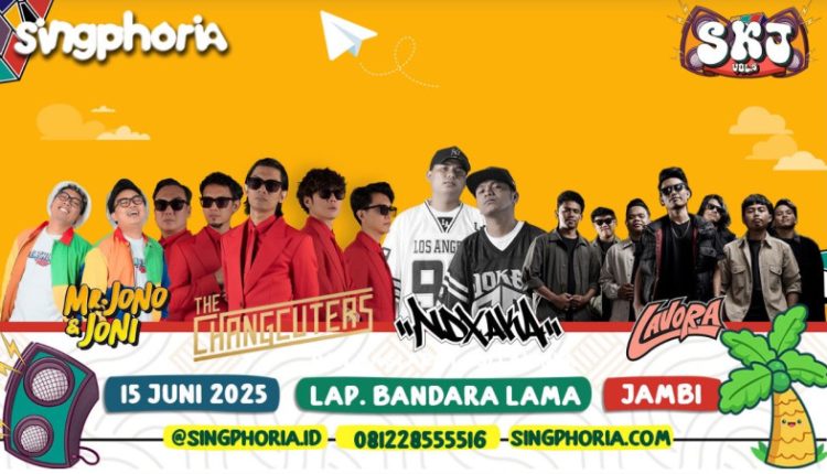 SERAMBIJAMBI.ID, JAMBI  – Pesta Musik Istimewa Singphoria SKJ (Semua Kangen Jambi) Volume 5 tinggal menghitung hari. Acara ini akan berlangsung di Lapangan Bandara Lama, Jambi pada Minggu, 15 Juni 2025 malam.