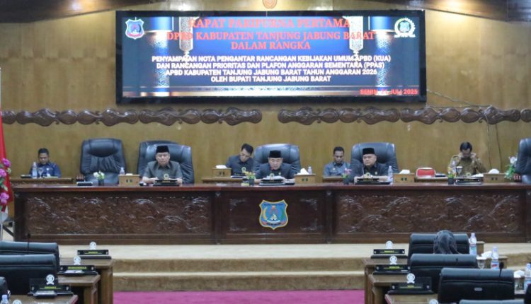 SERAMBIJAMBI.ID, TANJAB BARAT – DPRD Kabupaten Tanjung Jabung Barat (Tanjab Barat) menggelar Rapat Paripurna Pertama dalam rangka Penyampaian Nota Pengantar Rancangan Kebijakan Umum APBD (KUA) serta Rancangan Prioritas dan Plafon Anggaran Sementara (PPAS) APBD Tahun Anggaran 2026.