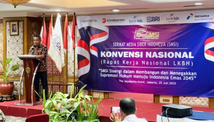 SERAMBIJAMBI.ID, JAKARTA – Serikat Media Siber Indonesia (SMSI) Pusat menggelar konvensi nasional dengan mengusung tema SMSI sinergi dalam membangun dan menegakkan supremasi hukum menuju Indonesia Emas 2045, bertempat di The Jayakarta, Jum’at (25/7/2025).