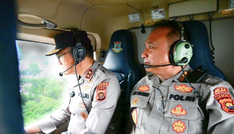 Kapolda Jambi Irjen Pol Krisno H Siregar turun langsung melakukan monitoring udara untuk memastikan kondisi terkini karhutla di wilayah Jambi, Rabu (30/7/2025).