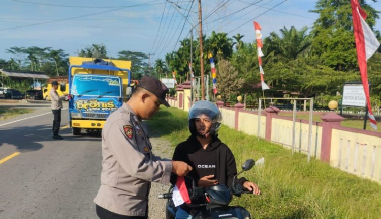 Polsek Betara Bagikan Bendera Merah Putih, Ajak Warga Kobarkan Semangat Kemerdekaan
