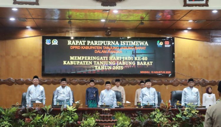 SERAMBIJAMBI.ID, TANJAB BARAT – Dewan Perwakilan Rakyat Daerah (DPRD) Kabupaten Tanjung Jabung Barat (Tanjab Barat) menggelar Rapat Paripurna Istimewa dalam rangka memperingati Hari Jadi Kabupaten Tanjab Barat ke-60 pada Minggu, 10 Agustus. Acara yang dihadiri berbagai tokoh penting ini menjadi puncak perayaan yang sarat makna.