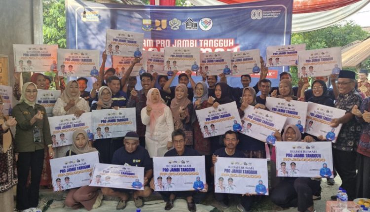 SERAMBIJAMBI.ID, KOTAJAMBI – Ketua Pembina Posyandu Provinsi Jambi, Hj. Hesti Haris menyerahkan bantuan sebanyak 50 unit Bedah Rumah bagi masyarakat Kota Jambi. Program ini merupakan bagian dari sinergi Pemerintah Provinsi Jambi melalui Program Pro Jambi Tangguh, yang pada tahun 2025 menyalurkan total 50 unit rumah di Kota Jambi. Bantuan tersebut diserahkan secara simbolis di kediaman Bapak Insafnir RT. 14 Keluarahan Wijayapura Kecamatan Jambi Selatan Kota Jambi, Jum’at (29/08/2025) sore.