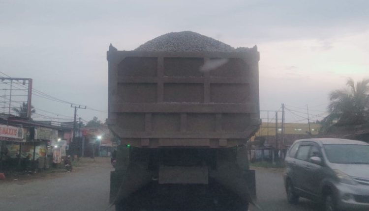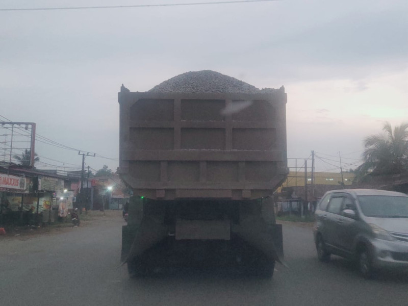 Sebuah truk dump besar yang tertangkap kamera di Jalan Lintas Sumatera Muaro Jambi menunjukkan praktik yang mengkhawatirkan. Truk yang melaju dari arah Tanjab Barat menuju Jambi tersebut membawa tumpukan batu split yang melebihi batas bak dan sama sekali tidak tertutup.