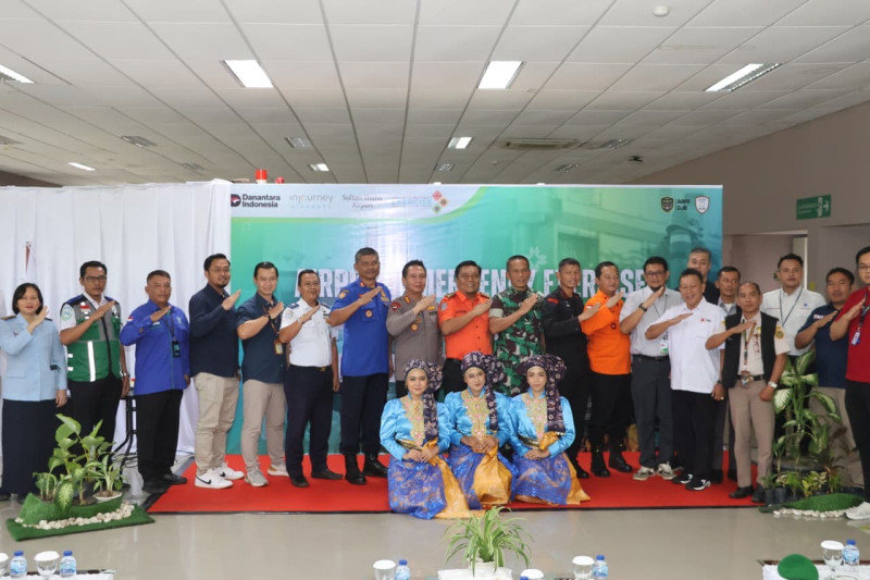 Kegiatan berlangsung di Aula Kantor Administrasi PT. Angkasa Pura Indonesia Kantor Cabang Bandara STS Jambi dan diikuti berbagai unsur terkait, termasuk TNI, Polri, instansi pemerintah, serta lembaga penanggulangan bencana dan keselamatan.