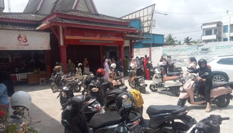 Pantauan di lokasi menunjukkan puluhan nasabah mendatangi Kantor Cabang Bank Jambi di Kuala Tungkal, Kabupaten Tanjab Barat, sekitar pukul 11.00 WIB.