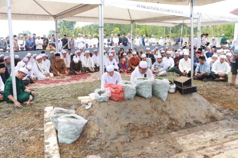 Bupati Tanjung Jabung Barat, Drs. H. Anwar Sadat, M.Ag dan Wakil Bupati Dr. H. Katamso, SA, S.E., M.E, hadir langsung di tengah kerumunan pelayat untuk menshalatkan dan mendoakan almarhum. Kehadiran Bupati dan Wakil Bupati bersama jajaran pejabat Pemkab ini merupakan bentuk penghormatan terakhir atas dedikasi besar sang ulama bagi umat.