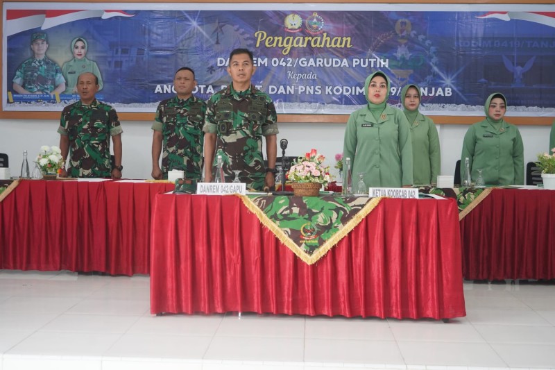 Dalam kegiatan tersebut, Danrem didampingi oleh Para Pejabat Utama (PJU) Korem 042/Gapu, Ketua Persit KCK Koorcab Rem 042 PD XX/TIB beserta pengurus.